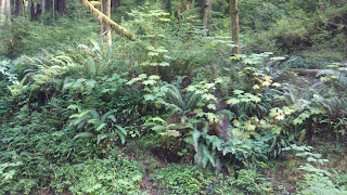 After perusing our 3 maps, all with different opinions, we decided it was time to get off the highway and try a scenic, even if a bit longer, route. "Old Scenic Hwy 101" turned out to be all of that and more. For 10 miles, we wound through amazing, virgin (temperate) rain forest, with HUGE trees dripping with lichen. The setting for all those tales of fairies, hobbits and more!